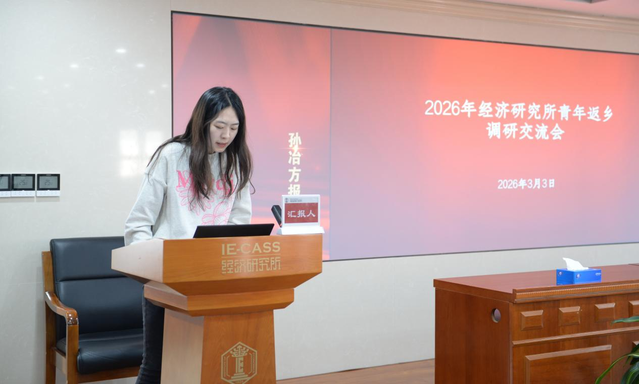 会上,参与春节返乡调研的青年科研人员依次汇报,围绕各自调研课题,详细阐述调研背景、调研过程、调研发现,并结合调研实际提出针对性的政策建议。