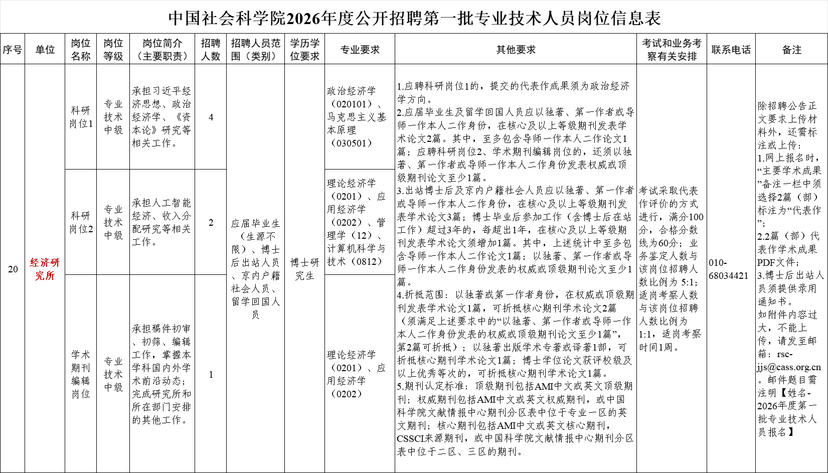 附件1:中国社会科学院2026年度公开招聘第一批专业技术人员岗位信息表.xlsx