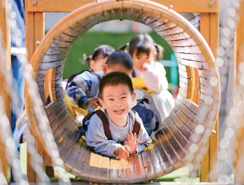 近年来,我国持续加强民生投入,真金白银“投资于人”。图为2025年11月4日,在山东青岛恒星科技学院恒星托育中心,小朋友在游乐场玩耍。 新华社发 张鹰/摄