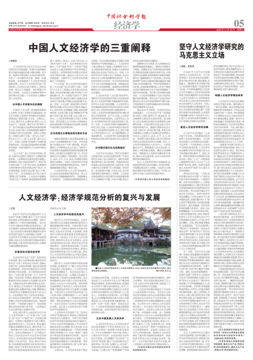 正因如此,人文经济学有助于理论与实践的有机贯通。马克思主义实践理性决定了人文经济学不会止步于概念阐释或价值阐发,而要在制度安排、政策制定与评价中不断生成实践形态。如今,人文经济学的规范逻辑已逐渐内化为多层次的经济治理原则:在宏观层面,以人民至上、共同富裕为发展目标;在中观层面,以文化赋能和绿色发展为导向;在微观层面,以人的全面发展为衡量标准。在这种“应然—实然—能然”的动态互动中,人文经济学使规范价值通过制度路径落地生根,也将为推进中国式现代化提供理论支持。